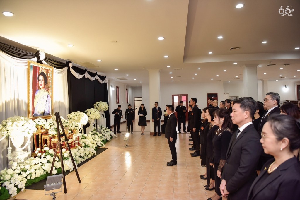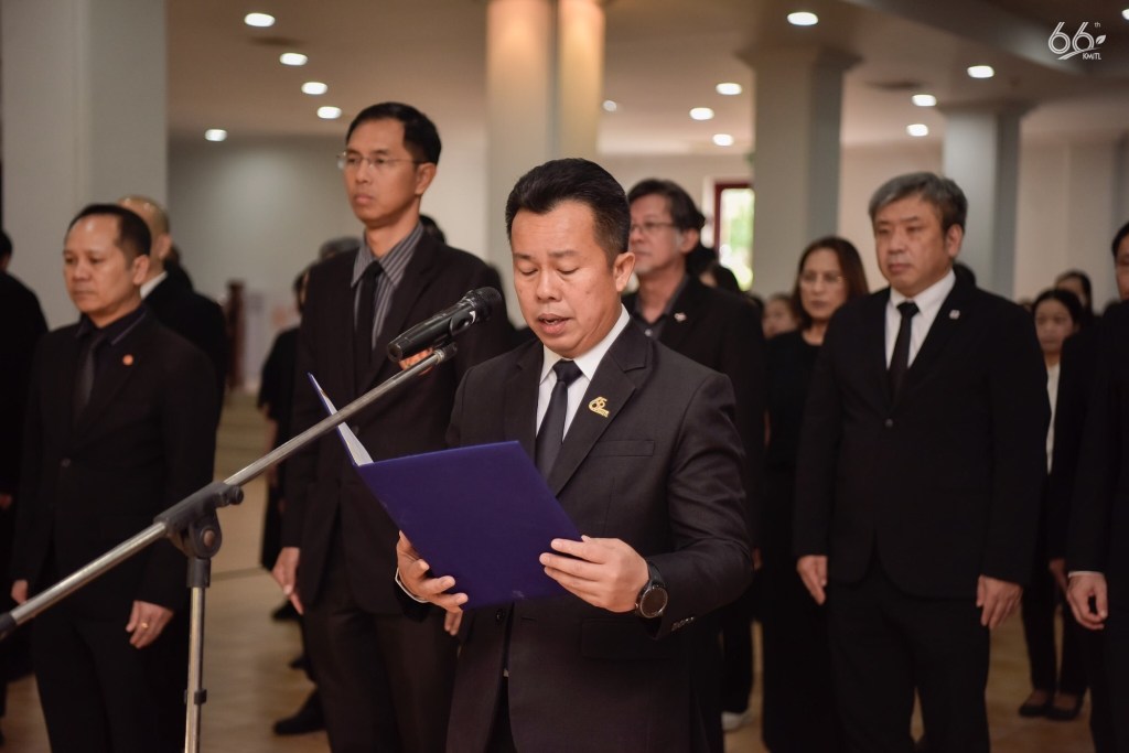 วันพุธที่ 29 ตุลาคม 2568 รศ. ดร.คมสัน มาลีสี อธิการบดี สถาบันเทคโนโลยีพระจอมเกล้าเจ้าคุณทหารลาดกระบัง (สจล.) พร้อมด้วยคณะผู้บริหาร และบุคลากร เข้าร่วมพิธีถวายความอาลัยและน้อมรำลึกในพระมหากรุณาธิคุณของสมเด็จพระนางเจ้าสิริกิติ์ พระบรมราชินีนาถ พระบรมราชชนนีพันปีหลวง เพื่อสำนึกในพระมหากรุณาธิคุณอันหาที่สุดมิได้ ซึ่งกิจกรรมในครั้งนี้ประกอบด้วยการลงนามถวายความอาลัย ถวายพวงมาลัย วางพวงมาลา เบื้องหน้าพระบรมฉายาลักษณ์ และผู้เข้าร่วมพิธีทุกท่านร่วมยืนสงบนิ่งเพื่อเป็นการไว้อาลัย ณ อาคารนวัตกรรมเฉลิมพระเกียรติ (เรือนไทย) สจล.