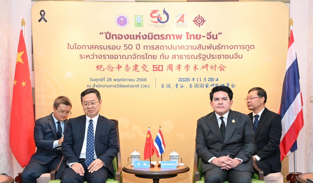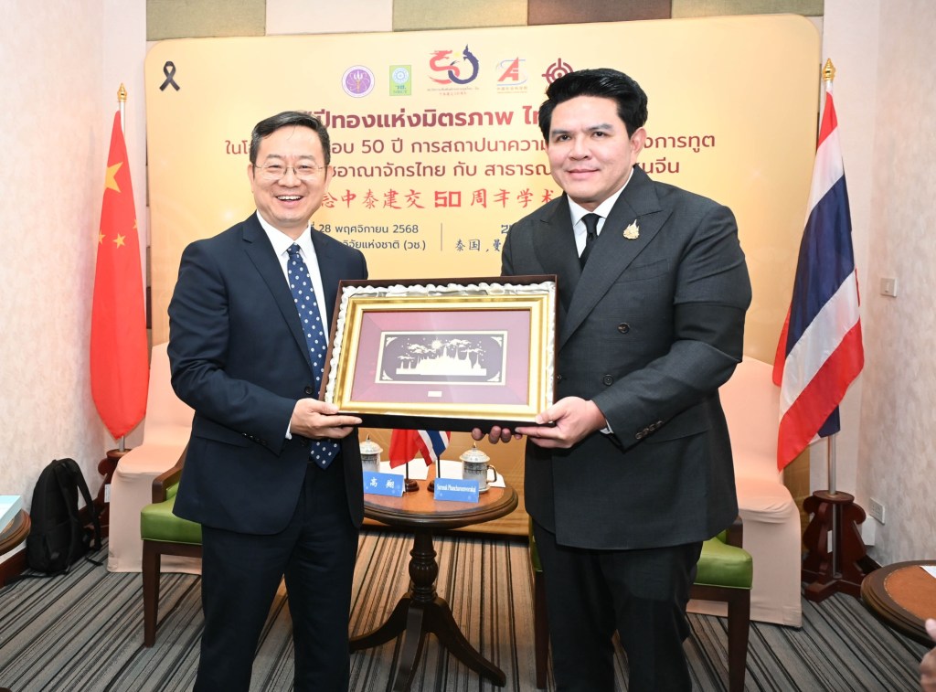 เมื่อวันที่ 28 พ.ย. นายสุรศักดิ์ พันธ์เจริญวรกุล รัฐมนตรีว่าการกระทรวงการอุดมศึกษา วิทยาศาสตร์ วิจัยและนวัตกรรม (อว.) เป็นประธานเปิดงาน “ปีทองแห่งมิตรภาพ ไทย–จีน” เนื่องในโอกาสครบรอบ 50 ปี การสถาปนาความสัมพันธ์ทางการทูตระหว่างประเทศไทยและสาธารณรัฐประชาชนจีน พร้อมกล่าวปาฐกถาพิเศษในหัวข้อ “ไทย–จีน สานพลังขับเคลื่อนอนาคตด้วยวิทยาศาสตร์ วิจัย และนวัตกรรม” โดยมี ศ.เกา เสียง ประธานสถาบันสังคมศาสตร์จีน (CASS) เป็นประธานร่วมเปิดงาน และมี ดร. วิภารัตน์ ดีอ่อง ผู้อำนวยการสำนักงานการวิจัยแห่งชาติ คณะผู้บริหารสำนักงานการวิจัยแห่งชาติ ข้าราชการ และเจ้าหน้าที่ เข้าร่วม ณ สำนักงานการวิจัยแห่งชาติ