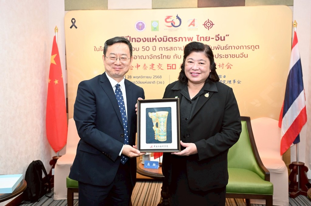 ด้าน ศ.เกา เสียง ประธานสถาบันสังคมศาสตร์จีน (CASS) กล่าวว่า ปีนี้เป็นหมุดหมายทางประวัติศาสตร์ที่สำคัญของความสัมพันธ์ไทย-จีน การสถาปนาความสัมพันธ์ในปี 2518 เป็นการตัดสินใจเชิงยุทธศาสตร์ที่ส่งผลลึกซึ้งต่ออนาคต และเป็นรากฐานของมิตรภาพอันยาวนาน ประเทศจีนและไทยได้พัฒนาจาก “มิตรบ้านใกล้เรือนเคียง” สู่ “ประชาคมร่วมชะตา” ที่เติบโตร่วมกันทั้งในมิติการเมือง เศรษฐกิจ และวัฒนธรรม