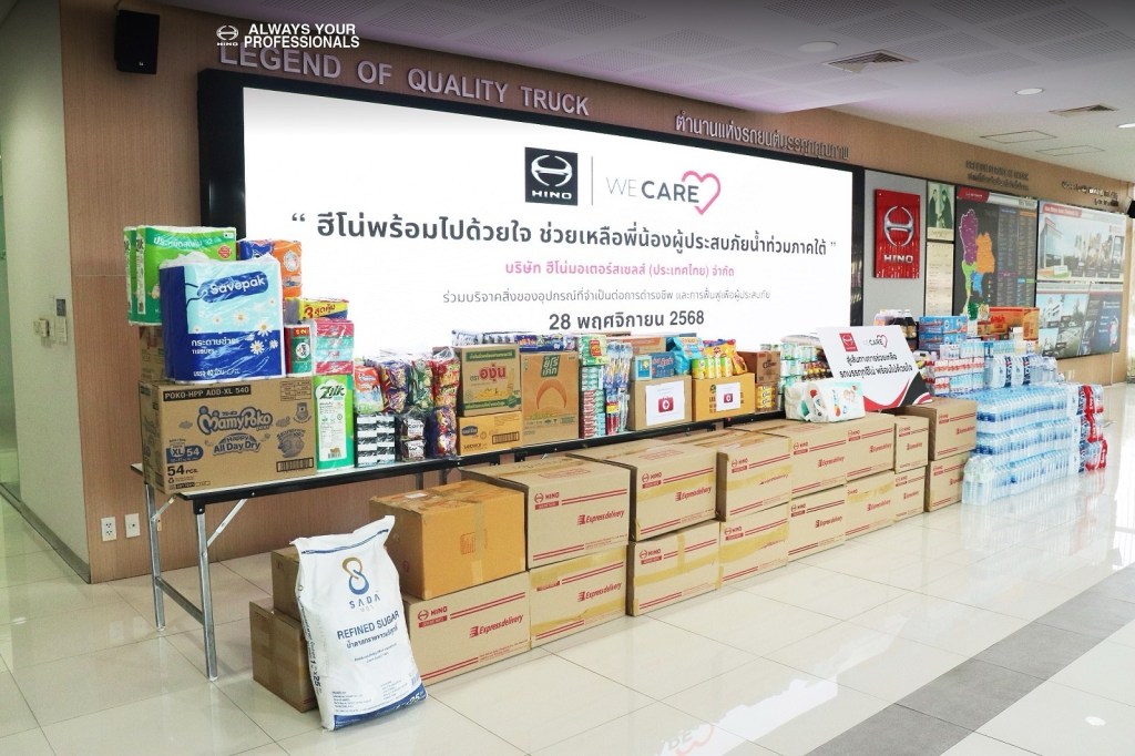 บริษัท ฮีโน่มอเตอร์สเซลส์ (ประเทศไทย) จำกัด เดินหน้าร่วมบรรเทาความเดือดร้อนจากสถานการณ์น้ำท่วมในหลายจังหวัดภาคใต้ ผ่านโครงการ “HINO WE CARE – ฮีโน่พร้อมไปด้วยใจ ช่วยเหลือพี่น้องผู้ประสบภัยน้ำท่วมภาคใต้” โดย คุณเดย์ ยิ่งชล และคุณยาสุมิตสึ ทานากะ กรรมการรองกรรมการผู้จัดการใหญ่ พร้อมคณะผู้บริหารและพนักงาน ร่วมกันจัดส่งสิ่งของอุปโภคบริโภคที่จำเป็น อาทิ น้ำดื่ม อาหารแห้ง ของใช้จำเป็น และเวชภัณฑ์ เพื่อบรรเทาความเดือดร้อนและสนับสนุนการฟื้นฟูในเบื้องต้นแก่ประชาชนในพื้นที่ประสบภัย