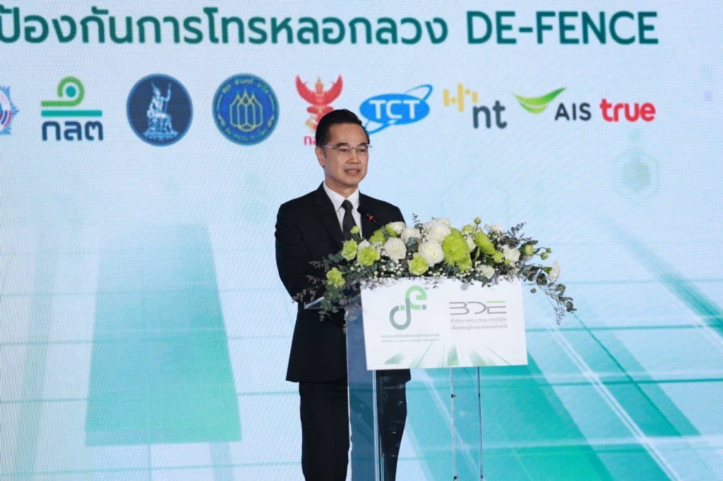 วันนี้ (15 มกราคม 2569) นายเวทางค์ พ่วงทรัพย์ เลขาธิการคณะกรรมการดิจิทัลเพื่อเศรษฐกิจและสังคมแห่งชาติ (BDE) และโฆษกกระทรวงดิจิทัลเพื่อเศรษฐกิจและสังคม (DE) ฝ่ายข้าราชการประจำ เป็นประธานงานแถลงข่าว “เปิดตัวแอปพลิเคชันป้องกันการโทรหลอกลวง” (DE-FENCE) ภายใต้โครงการพัฒนาแพลตฟอร์มป้องกันการโทรหลอกลวง โดยสำนักงานปลัดกระทรวงดิจิทัลเพื่อเศรษฐกิจและสังคม และสำนักงานคณะกรรมการดิจิทัลเพื่อเศรษฐกิจและสังคมแห่งชาติ บูรณาการความร่วมมือจากหน่วยงานที่เกี่ยวข้อง ประกอบด้วย สำนักงานตำรวจแห่งชาติ สำนักงานคณะกรรมการกิจการกระจายเสียง กิจการโทรทัศน์ และกิจการโทรคมนาคมแห่งชาติ (กสทช.) สมาคมโทรคมนาคมแห่งประเทศไทยในพระบรมราชูปถัมภ์ ธนาคารแห่งประเทศไทย สมาคมธนาคารไทยสำนักงานคณะกรรมการป้องกันและปราบปรามการฟอกเงิน สำนักงานคณะกรรมการกำกับหลักทรัพย์และตลาดหลักทรัพย์กรมสอบสวนคดีพิเศษ กองบัญชาการตำรวจสืบสวนสอบสวนอาชญากรรมทางเทคโนโลยี สำนักงานคณะกรรมการการรักษาความมั่นคงปลอดภัยไซเบอร์แห่งชาติ (สกมช.) สำนักงานคณะกรรมการคุ้มครองข้อมูลส่วนบุคคล (สคส.) บริษัท โทรคมนาคมแห่งชาติ จำกัด (มหาชน) บริษัท แอดวานซ์ ไวร์เลส เน็ทเวอร์ค จำกัด และบริษัท ทรู มูฟ เอช ยูนิเวอร์แซล คอมมิวนิเคชั่น จำกัด จัดขึ้น ณ โรงแรมอัศวิน แกรนด์ คอนเวนชั่น กรุงเทพฯ