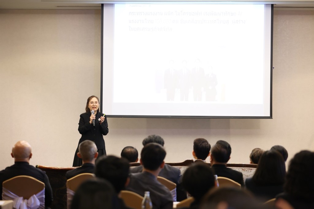 นอกจากนี้ ยังมีการนำเสนอหัวข้อ “Copilot for Productivity and Employability Strengthening” ซึ่งสะท้อนบทบาทของ AI ในการเพิ่มผลิตภาพและเสริมสร้างความสามารถในการทำงานของแรงงานไทยในสถานการณ์จริง
