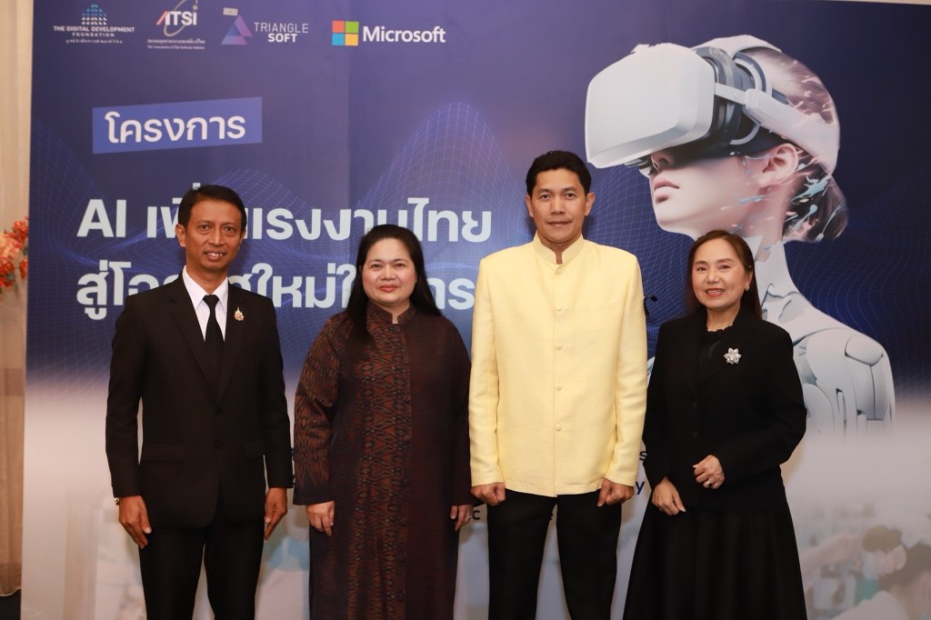 กรุงเทพฯ – มูลนิธิเพื่อการพัฒนาดิจิทัล (Digital Development Foundation: DDF) สมาคมอุตสาหกรรมซอฟต์แวร์ไทย (ATSI) และบริษัท ไทรแองเกิ้ลซอฟท์ จำกัด (TGS) ร่วมกับ บริษัท ไมโครซอฟท์ (ประเทศไทย) จำกัด และเครือข่ายพันธมิตรภาครัฐและเอกชน เปิดตัวโครงการ AI เพื่อแรงงานไทย สู่โอกาสใหม่ในการทำงาน อย่างเป็นทางการ ภายใต้คอนเซ็ปต์ “Equipping at-risk workers with essential AI skills to improve employability and economic resilience” เพื่อเสริมสร้างศักยภาพแรงงานไทยด้วยทักษะด้านปัญญาประดิษฐ์ (AI) รองรับการเปลี่ยนแปลงของตลาดแรงงานในยุคดิจิทัล